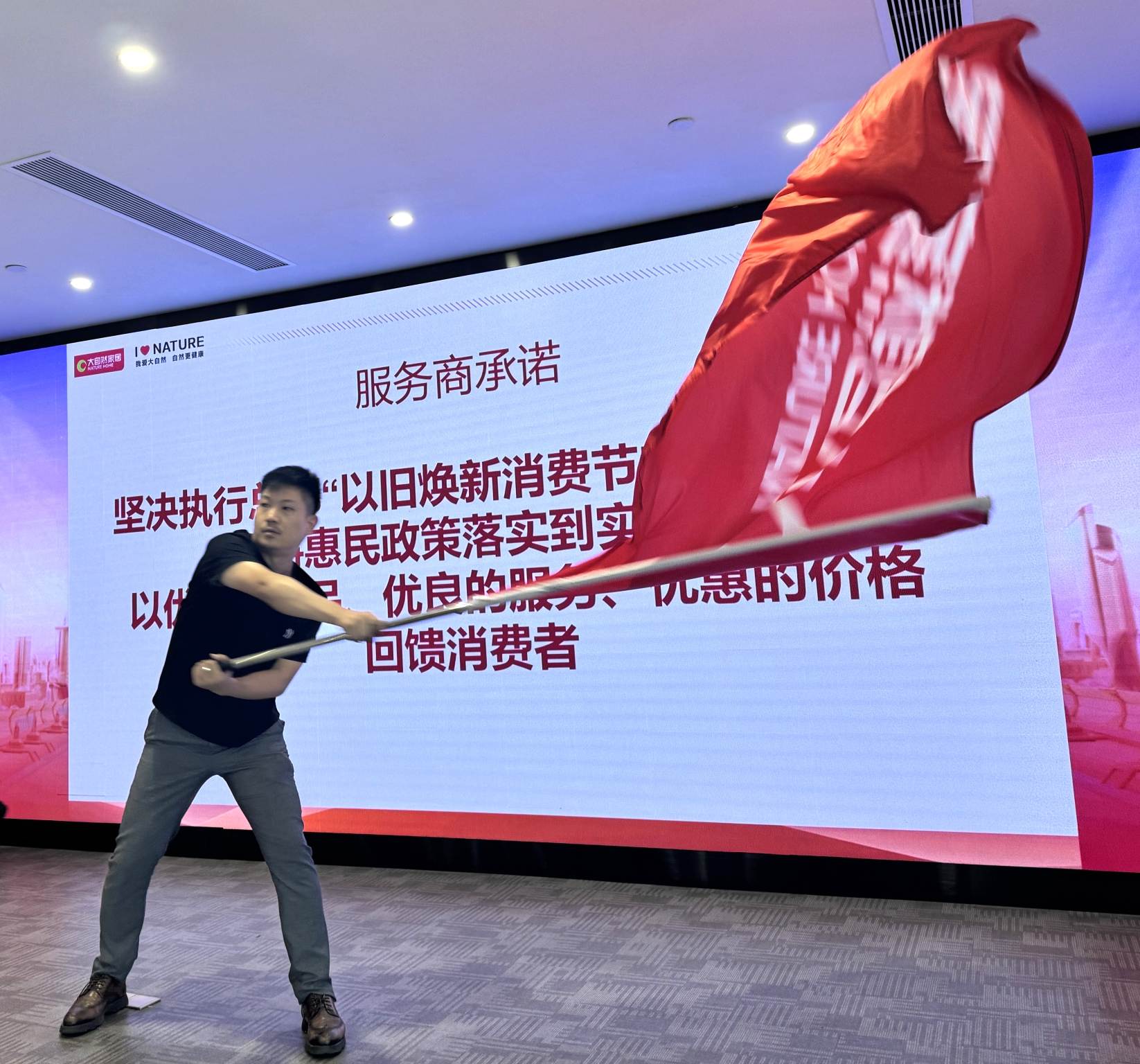 紙上談兵終覺淺,落到實(shí)處才是真。在啟動儀式上,大自然家居服務(wù)商代表鄭重宣誓,堅(jiān)決將“以舊煥新消費(fèi)節(jié)”惠民舉措貫徹落地,將活動氛圍推向高潮。響徹會場的誓詞,表明大自然家居自上而下將煥新活動落到實(shí)處的決心,用優(yōu)質(zhì)的產(chǎn)品、優(yōu)良的服務(wù)、優(yōu)惠的價(jià)格與用戶搭建信任橋梁,為用戶安心以舊換新保駕護(hù)航。