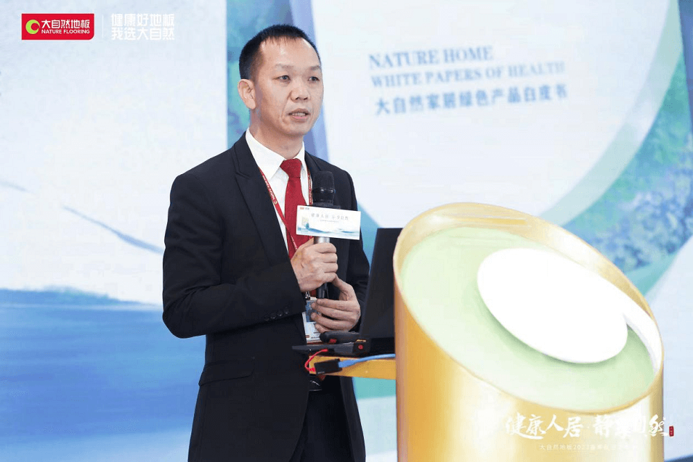 為了響應行業(yè)綠色發(fā)展要求,發(fā)布會上大自然家居地板事業(yè)部總裁、產(chǎn)品中心總經(jīng)理饒海清先生圍繞《綠色產(chǎn)品評價 人造板和木質(zhì)地板》國家標準、《綠色產(chǎn)品評價 木質(zhì)門》中國林產(chǎn)工業(yè)協(xié)會團體標準,重磅發(fā)布《大自然家居綠色產(chǎn)品白皮書》,積極發(fā)揮龍頭企業(yè)的引領(lǐng)示范作用,堅持綠色發(fā)展,促進中國家居產(chǎn)品質(zhì)量的提升和產(chǎn)業(yè)轉(zhuǎn)型升級,引領(lǐng)綠色消費。