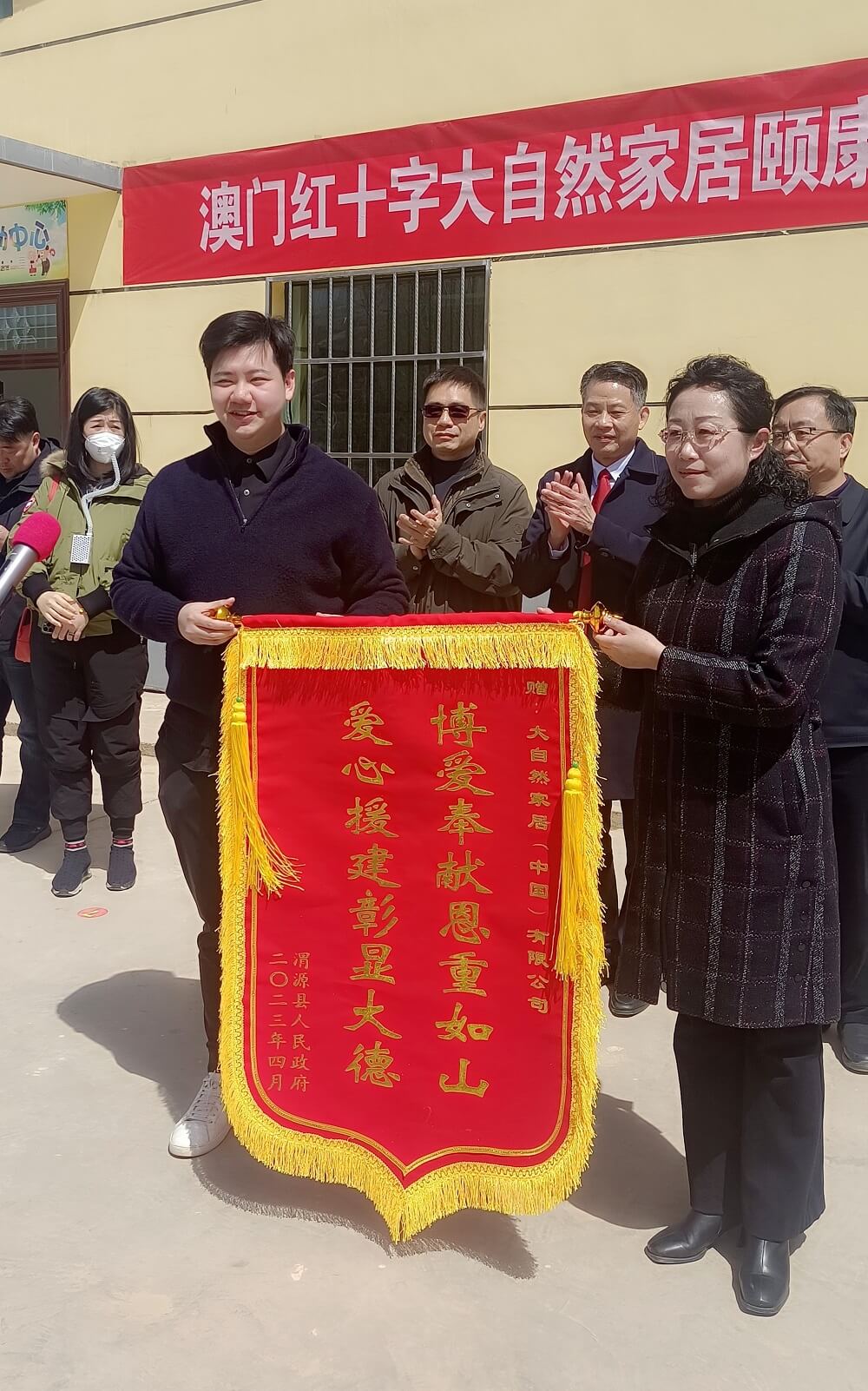 現(xiàn)場分別由定西市市政府代表、甘肅省紅十字會(huì)代表、澳門紅十字會(huì)代表、大自然家居董事長佘學(xué)彬以及大自然家居常務(wù)副總裁佘嘉浚共同完成揭牌儀式。