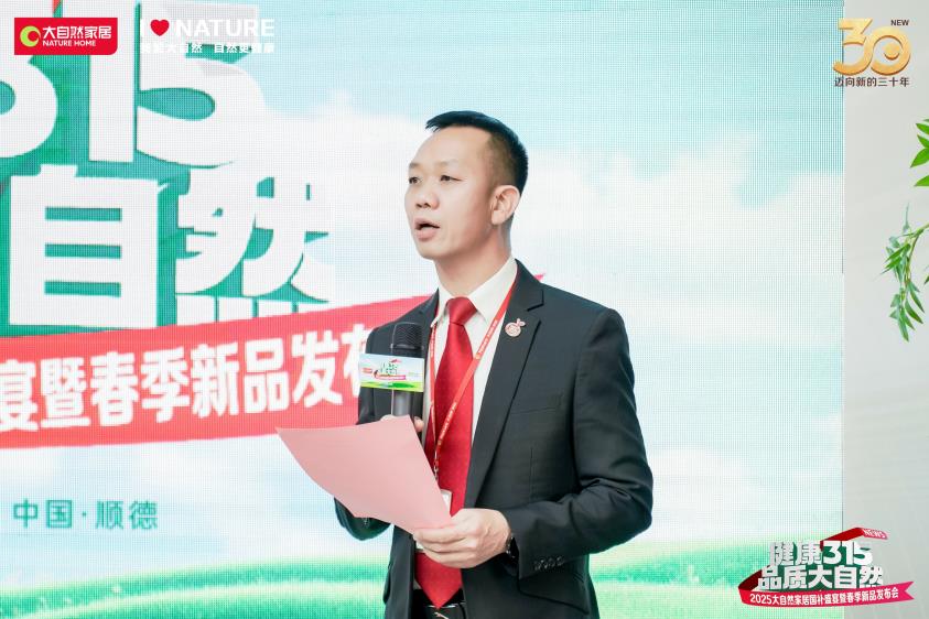 發(fā)布會(huì)伊始,大自然家居集團(tuán)副總裁、COO、CHO饒海清深刻闡述了大自然家居的品牌初心與未來愿景。饒海清表示,自1995年創(chuàng)立以來,大自然家居始終堅(jiān)守“擔(dān)環(huán)保責(zé)任、普健康生活、做健康家居”的使命,以綠色健康為核心理念,持續(xù)探索可持續(xù)發(fā)展路徑。此外,他還強(qiáng)調(diào)讓億萬(wàn)家庭享受健康家居,不是商業(yè),而是一份責(zé)任;讓綠色生活觸手可及,不僅是愿景,更是實(shí)實(shí)在在的行動(dòng)。大自然家居將以實(shí)際行動(dòng)踐行承諾,推動(dòng)綠色家居成為新時(shí)代風(fēng)潮。