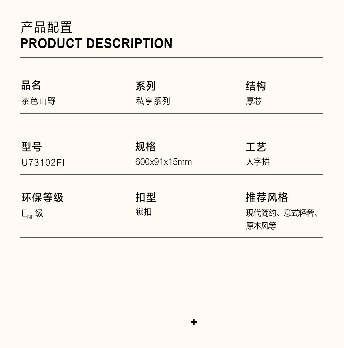 | 產(chǎn)品名稱/型號 | 茶色山野 U73102FI(人字拼) | ? |